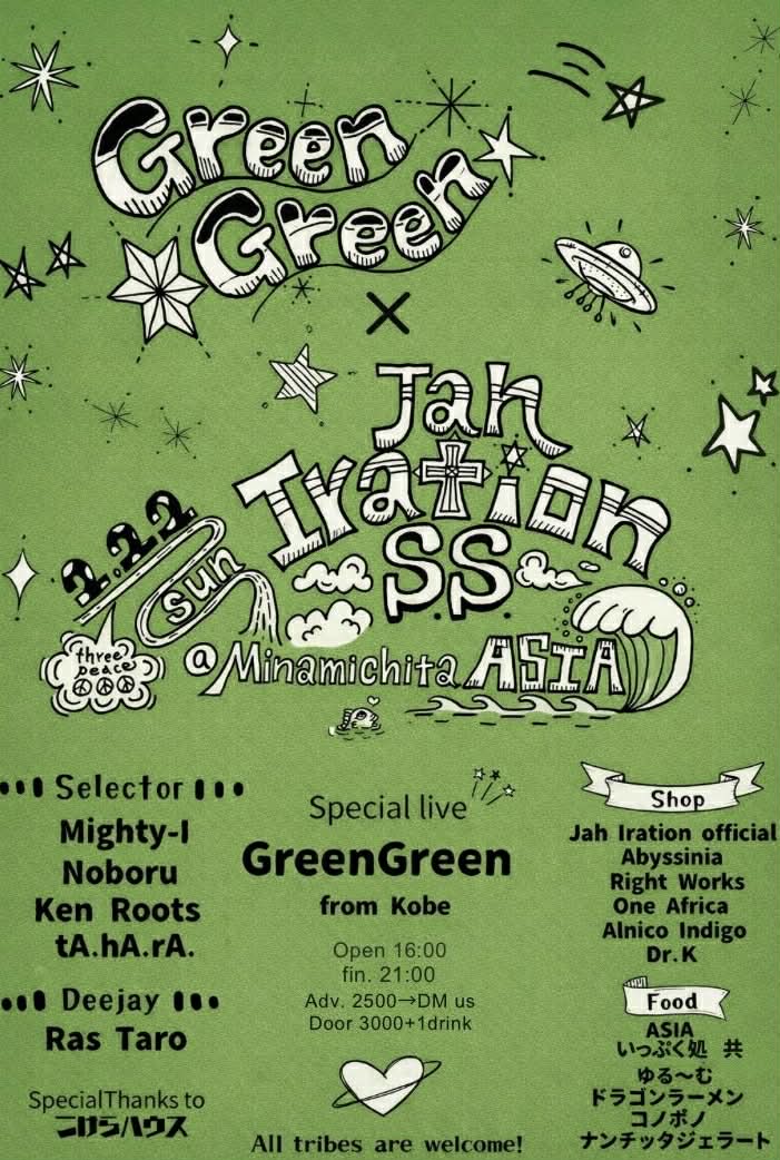 出演✳︎Green Green✳︎@greengreen_insta@originalkose@chinnnenn✳︎Jah Iration ✳︎@jahirati…