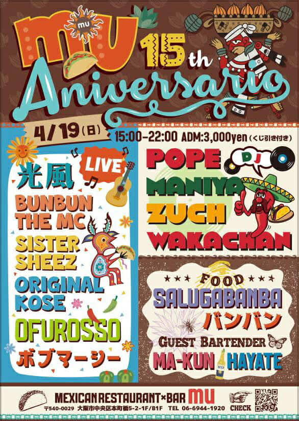 2026.4.19 SUN mu15th Anniversary Party at 本町橋 mexicanrestaurant bar MU