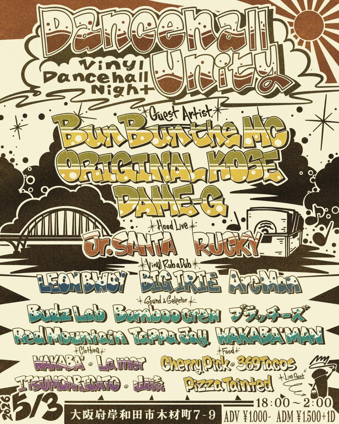Jr.Santa&Budz Lab Presents2026 5/3 at 岸和田市木材町の倉庫“Dancehall Unity”
